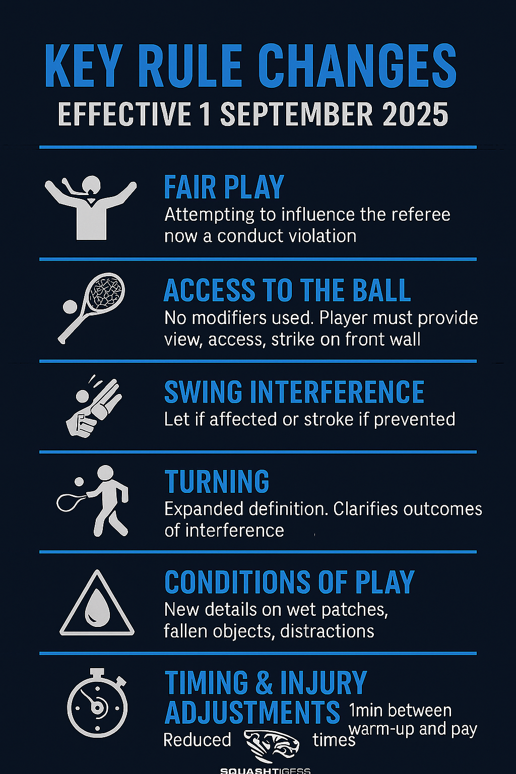 Basert på reglene godkjent av World Squash Federation (WSF) og gjeldende fra 1. september 2025.